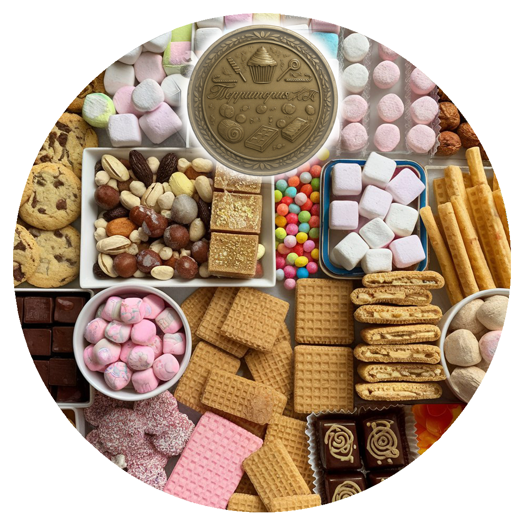 Премиальные кондитерские изделия — печенье, зефир, конфеты, карамель, сушки и сухари, снеки, семечки, вафли, мармелад и восточные сладости.